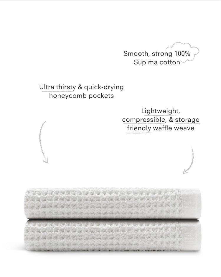 Quick-drying comfort is our middle name (really—check our birth certificate). Our towels dry super fast thanks to our unique waffle weave, so they’re always dry and never musty.